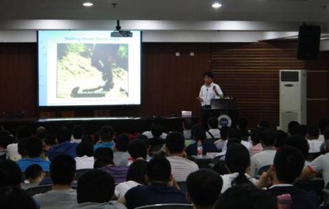 Zhidong, Wang, a professor from Chiba University’s advanced robot system, used colorful words to explain why only dozens of people can take a God weighed about ten tons to run quickly, and drew a topic about multiple robot’s control. Then, the professor Zhidong, Wang, gave people a lecture called Design Cooperate Control Strategy for Multi-Robot and Human-Robot Systems.The president of the Control Engineering college Hui, Ju, held the lecture.What’s more, there were many teachers, graduate students and undergraduates listening to the lecture.